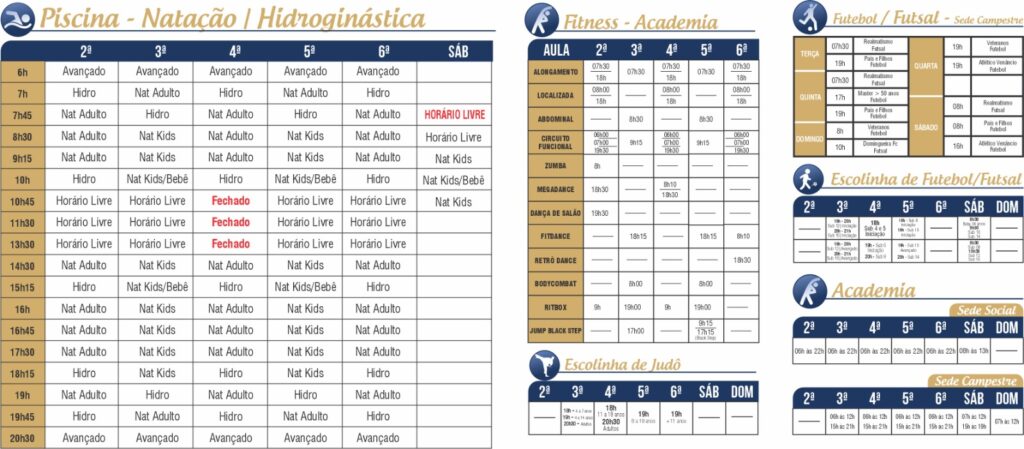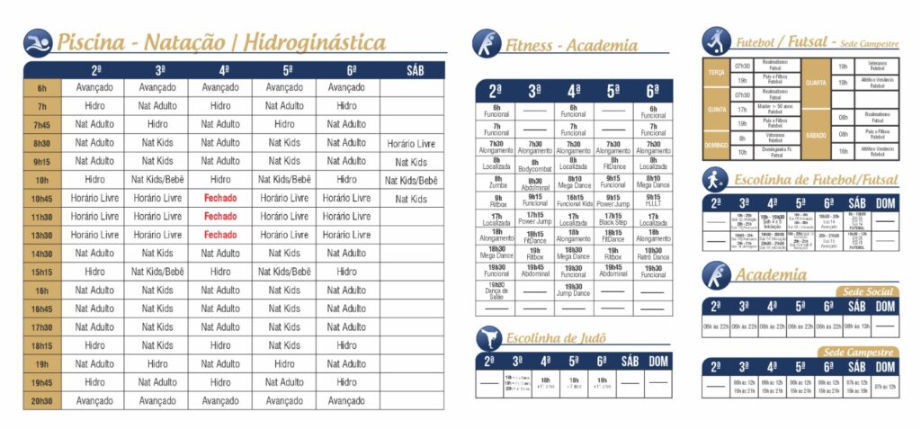 Na sede social, no centro da cidade, e na sede campestre, o clube disponibiliza aos sócios piscinas (incluindo uma aquecida para hidroginástica) e aulas de natação.